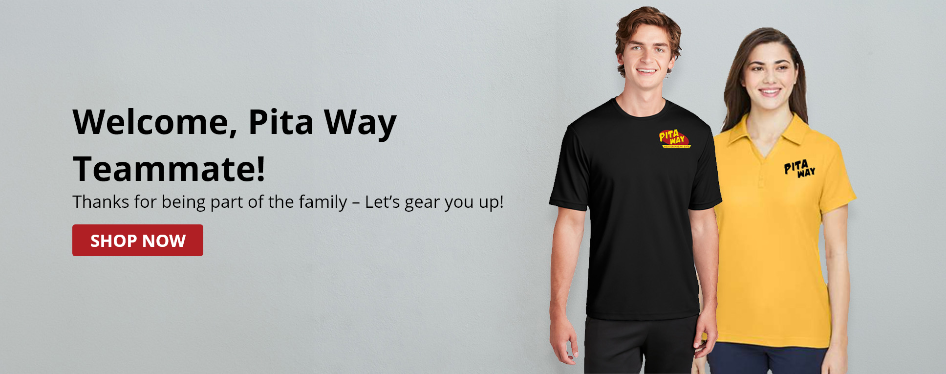 Welcome to the official Pita Way Apparel Store, your one-stop shop for all things Pita Way gear. Whether you're a crew member, manager, or part of our corporate team, this site is designed just for you. Browse approved uniforms, branded accessories, and exclusive items to help you represent the brand with pride. Let’s gear up and show what it means to be part of the Pita Way family.